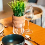 - ❓Is there a kitchen available at this apartment for guest use?Yes, this apartment is furnished with a fully-equipped kitchen and offers coffee and tea making machines, a refrigerator, and kitchenware as well.